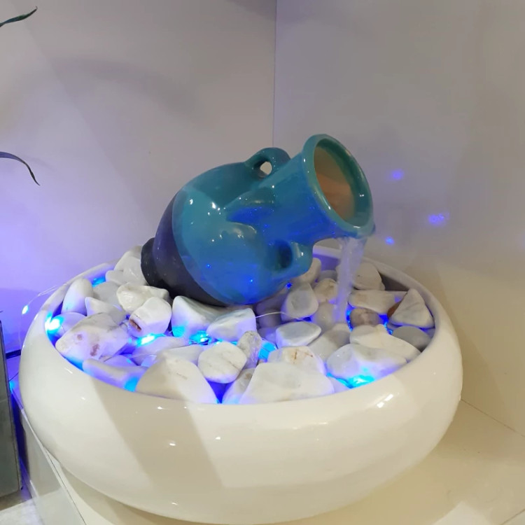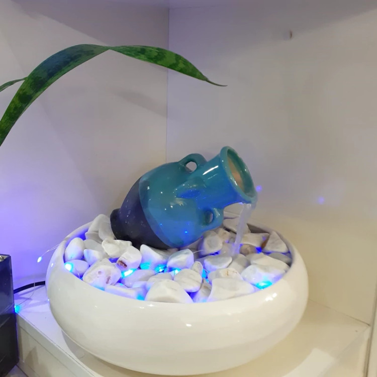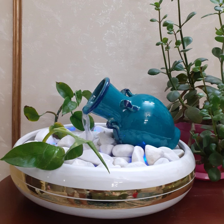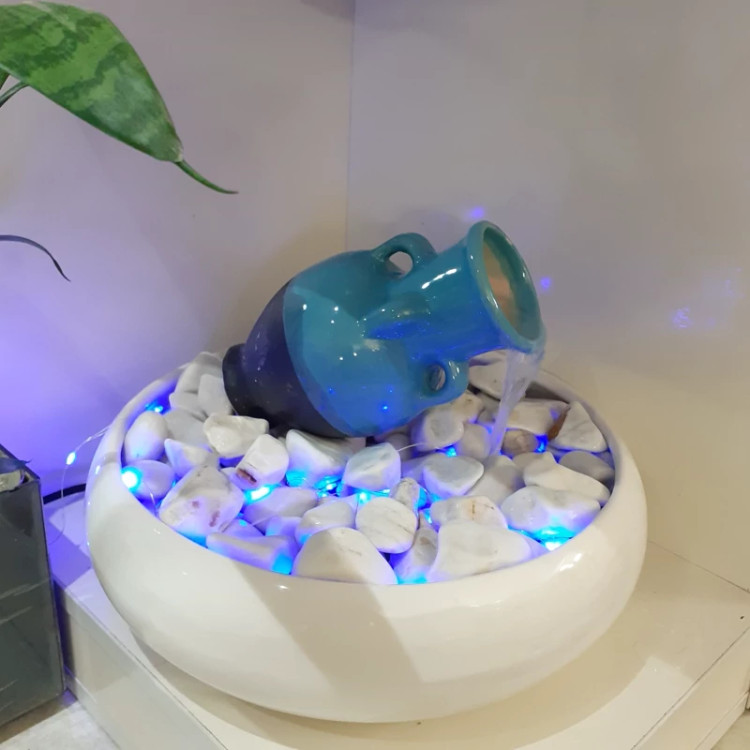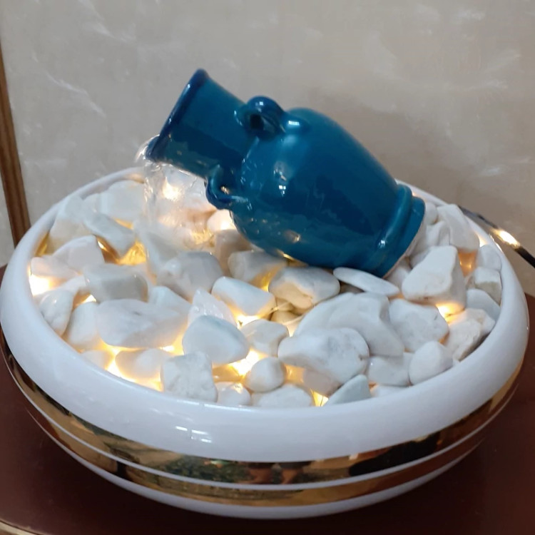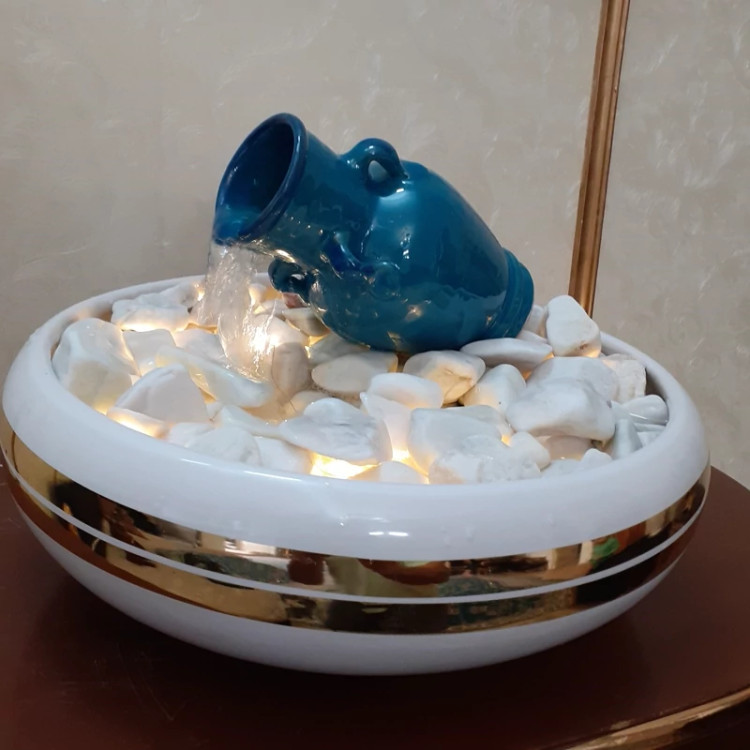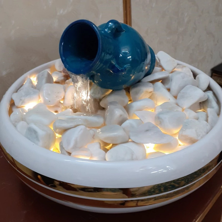 تولید کننده آبنما رومیزی فنگشویی .دارای پمپ آب باکیفیت دارای نور داخل کار.سنگ داخل کار مرمر سفید طبیعی.قطر ظرف 25سانت.