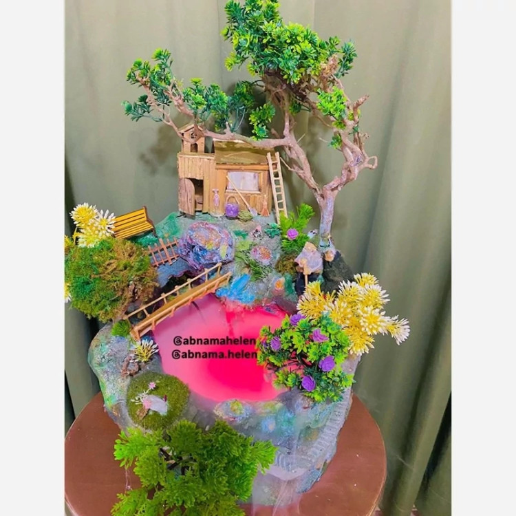دارای درختچه های طبیعی و خزه جاویدان پل و کلبه دست ساز مجسمه دست ساز و قابلیت جابجایی و نیازی به لوله کشی اب نداره و قابلیت شستشو داره
