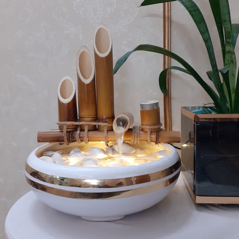 تولیدکننده ابنما رومیزی . دارای پمپ آب. با کیفیت دارای نور . سنگ داخل کار مرمر طبیعی .قطر 25سانت احتیاجی به لوله کشی اب ندارد.