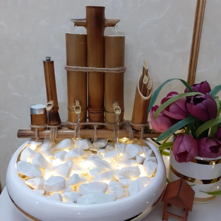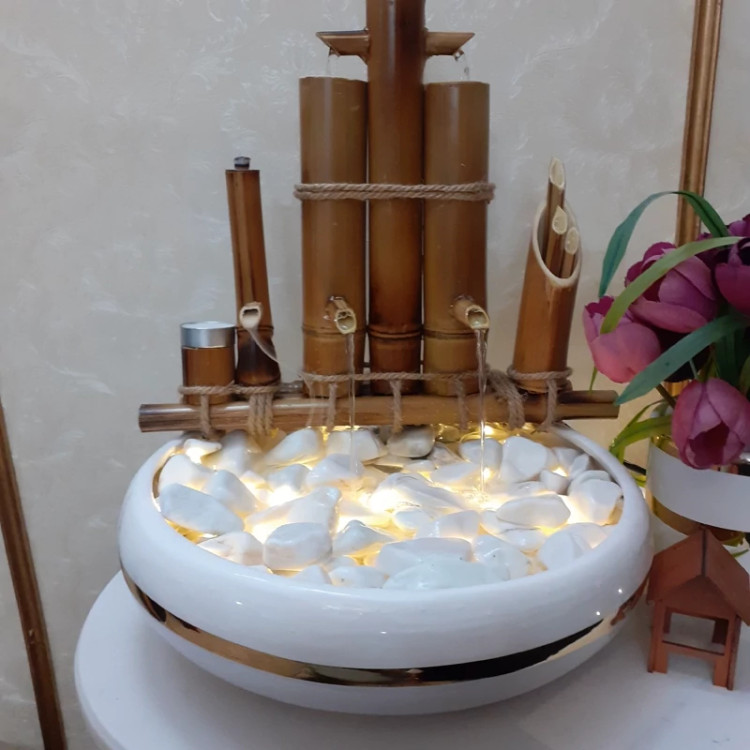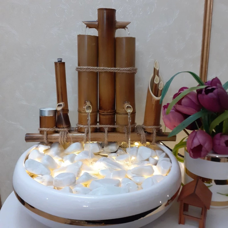 تولیدکننده آبنما رومیزی دارای پمپ آب با کیفیت دارای نور کاملا ضدآب قطر ظر ف۳۰سانت بهترین هدیه احتیاجی به لوله کشی آب ندارد