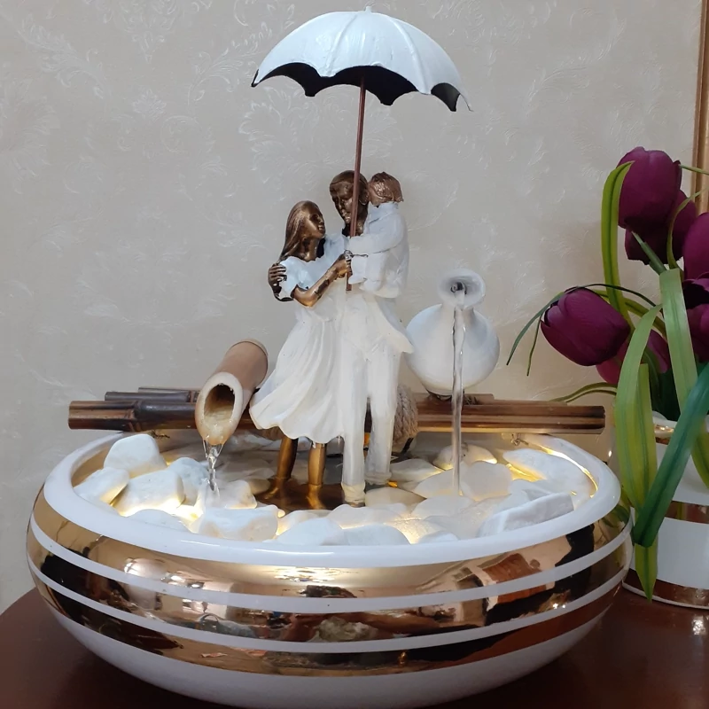 تولیدکننده آبنما رومیزی دارای پمپ آب بیصدا دارای نور کاملا ضدآب قطر ظرف 30سانت سرامیکی احتیاجی به لوله کشی آب ندارد. دارای سنگریزه قابلیت جابجایی