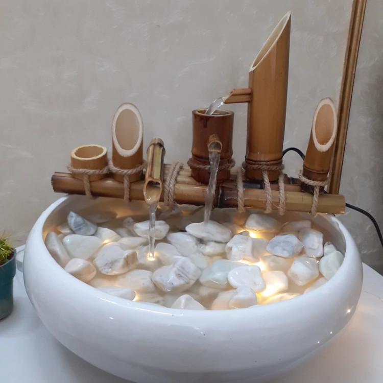 تولیدکننده آبنما رومیزی دارای پمپ آب بیصدا دارای نور کاملا ضدآب احتیاجی به لوله کشی آب ندارد.فقط داخل ظرف رو پراب کنید پمپ رو به برق بزنید شروع به کار میکند. قطر ۳۰سانت سرامیکی