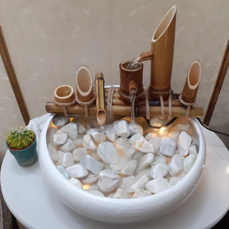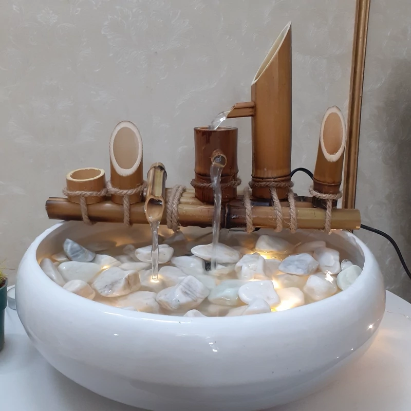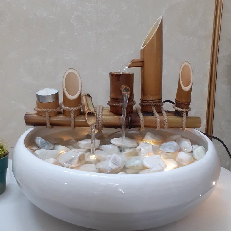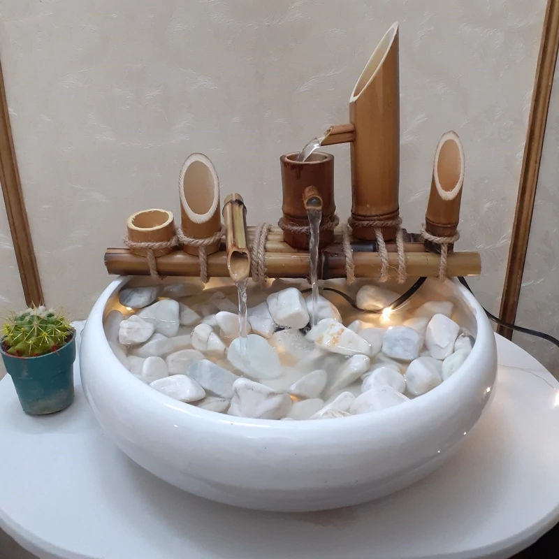 تولیدکننده آبنما رومیزی دارای پمپ آب بیصدا دارای نور کاملا ضدآب احتیاجی به لوله کشی آب ندارد.فقط داخل ظرف رو پراب کنید پمپ رو به برق بزنید شروع به کار میکند. قطر ۳۰سانت سرامیکی