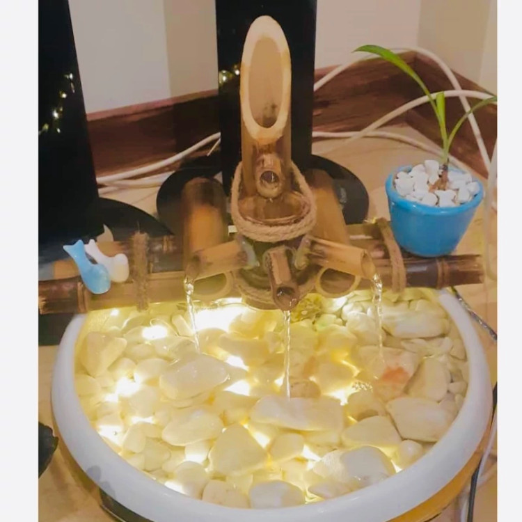 دارای پمپ اب با کیفیت و دایمی دارای نور ضداب دارای سنگریزه مرمر بامبو اصل و قابلیت جابجایی و نیازی به لوله کشی اب نداره چند لیتر اب داخل ظرف پر کنید به برق بزنید شروع به کار میکنه اصلا خطر برقگرفتگی نداره و مصرف برق خیلی خیلی کم داره و سوالی بود در خدمتم