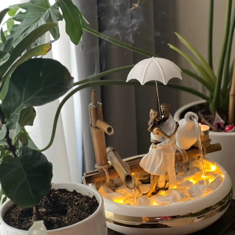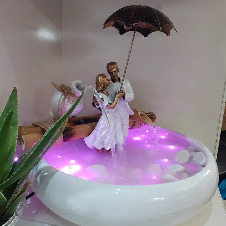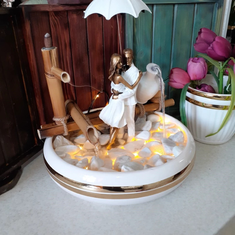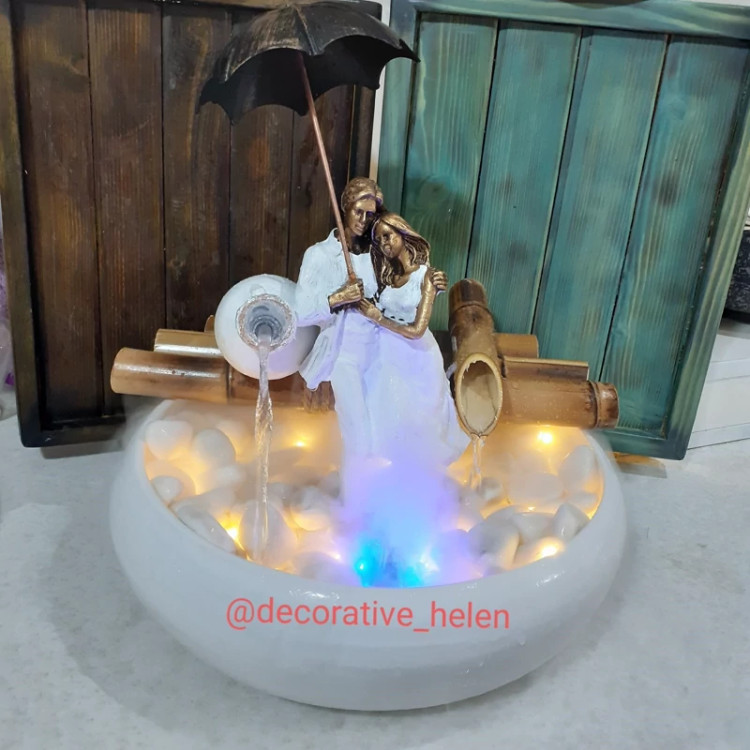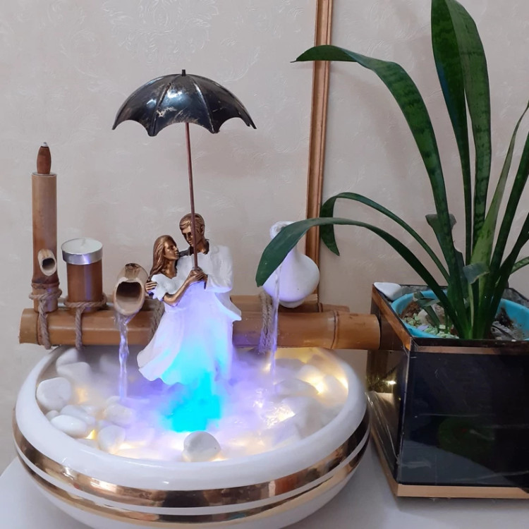 دارای پمپ با کیفیت. توجه :مجسمه ها رندومی هستند و احتمال اینکه کنار هم یا روبرو هم باشند متفاوت باشد. دارای نور .دارای سنگ ریزه .قطر ظرف ۳۰سانت . جنس ظرف سرامیکی هزینه مه ساز جداست بهترین و مناسب ترین هدیه