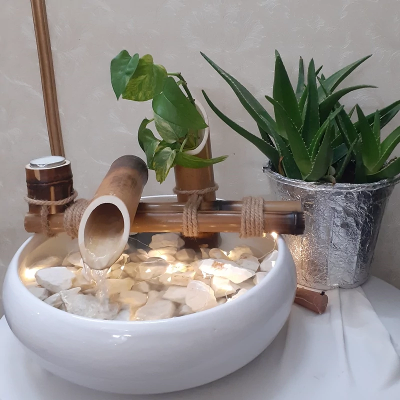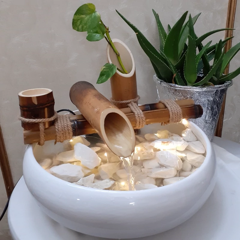 آبنما رومیزی فنگشویی بامبو مدل سهروردی .دارای پمپ آب با کیفیت .دارای سنگ داخل کار مرمر سفید طبیعی .دارای نور قطر ظرف 25